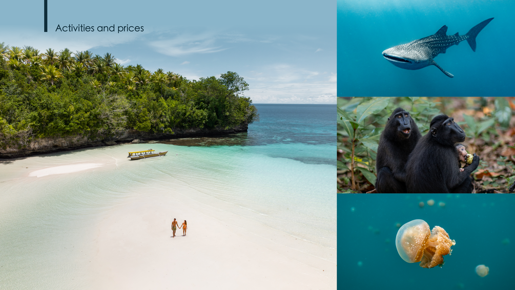 - Activities & their prices for each region, with address or contact to book.